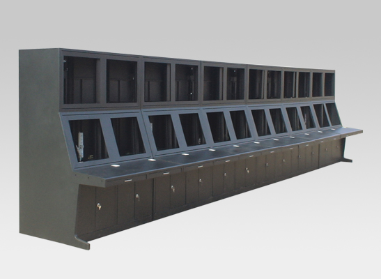 4、外表噴塑,結構可拆卸,局部可用防火密度木板等材料裝飾,鋼木結合構成,外型高雅美觀,工藝精湛。 5、拼裝式操作臺、電視墻主要用于電視臺,輪船,車站,機場,證 券等大型機房控制